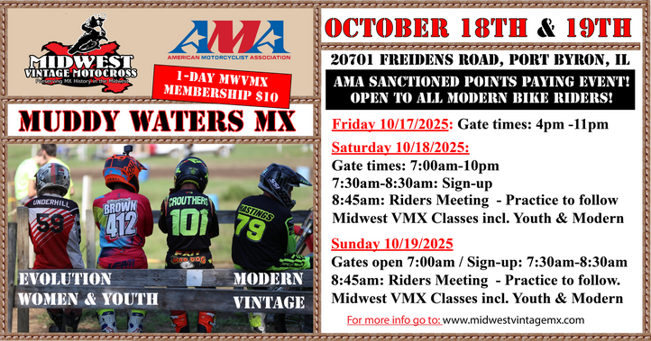 priceless. Midwest Vintage Motocross has been created to meet this goal for all riders and