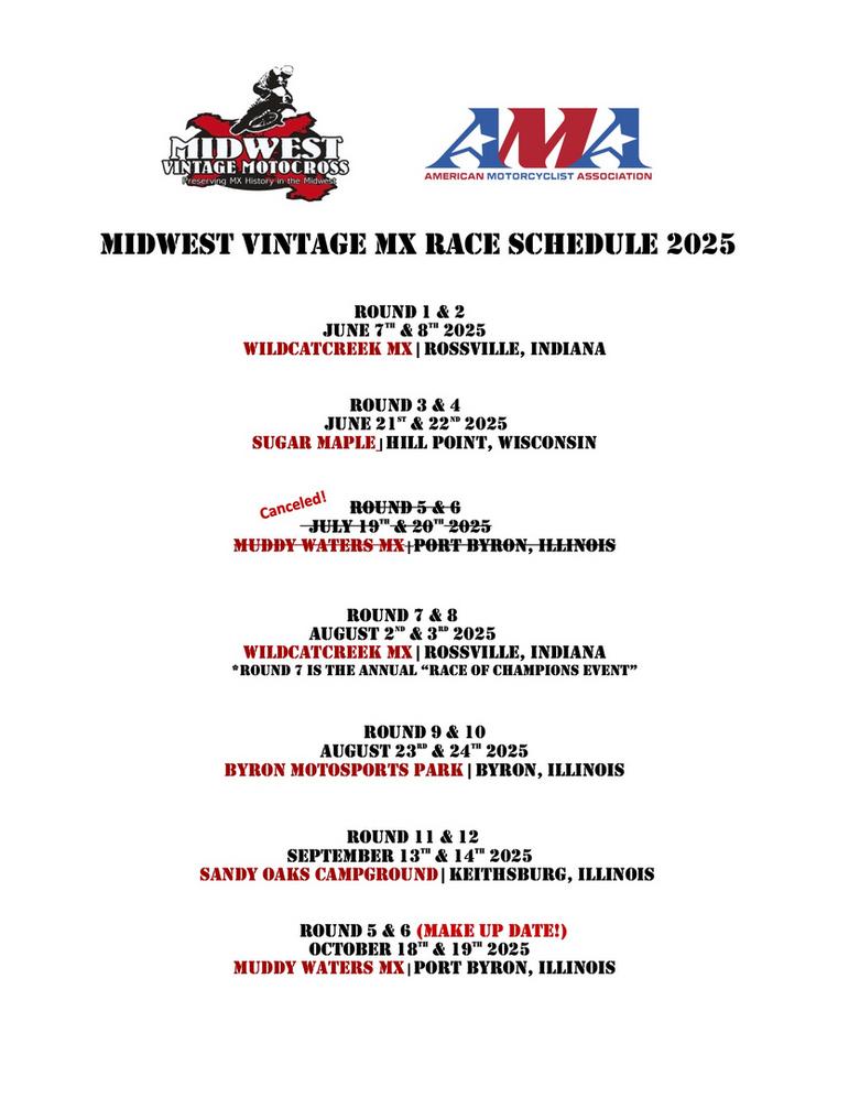 Dates subject to change due to weather or unforeseen circumstances. Please check the Midwest VMX Facebook page for the most up to date information!